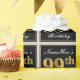 This simple and elegant wrapping paper design features a personalised message like "NameHere’s 99th Birthday" (with the "99th" having a faux/imitation gold-like colouring look) within a black-coloured square area featuring a simple border outline. The name is in an elegant white-coloured script-like text, and can be personalised. Wrapping paper like this could perhaps be used when wrapping birthday gifts for somebody who is celebrating their ninety ninth birthday. [~Z0000217]
