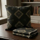 Seamless decorative pattern featuring faux gold ornaments on a black background.