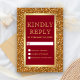 Elegant RSVP card featuring a faux gold foil border and a beautiful faux gold glitter background.