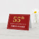 Elegant Faux Gold Look "55th" Birthday, Name (Red) Card