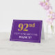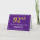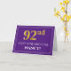 Elegant Faux Gold Look 92nd Birthday, Name; Purple Card