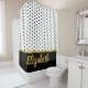 Elegant Faux Gold Script with Black Dot on White Shower Curtain