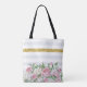 Elegant FAUX Gold Stripe With Pink Roses and Name Tote Bag