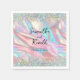 Wedding napkins featuring an elegant faux iridescent foil and glitter design.