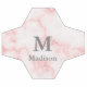 Grey text can be edited to display the correct monogram and name. The soccer ball also has an elegant faux pink marble design.