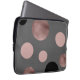 Modern and stylish design representing faux rose gold, pink and black circles on a grey background.