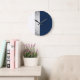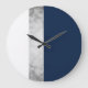 elegant faux silver, navy blue, white stripes large clock