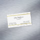 Black text is on a white background. Customise the business card with your name , title, address, phone number and e-mail address. A faux gold border is above and below the text. Above and below the gold borders are a stone marble texture. Border is not foil.