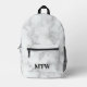 Elegant Faux White Marble Black Monogram Template Printed Backpack