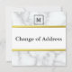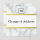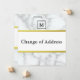 Do you need to make a moving announcement? A white marble texture look background can be customised with your monogram, name and new address. At the top there's a square for your monogram. On front, there's customisable black text (shown:'Change of Address'). On back, is a white background for your name and new address.