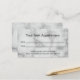 This professional business appointment card is double-sided. Both sides have an elegant faux white marble background. Side one says "Your Next Appointment" and has lines for the date and time of the appointment. At the bottom, there's display text you can edit to create a custom message if desired. (Shown: Kindly provide 24 hours notice if unable to keep your appointment.) Side two has display text to replace with the company name and its address, phone number, and website. All text can be edited or deleted. The text is black.