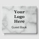 Do you need to record who attends your corporate events? A guest book makes recordkeeping easy and personal. On the front of this faux white marble guest book, there's a large display image. (Shown: Your Logo Here). You can replace the display image with the appropriate logo. At the bottom, there's black display text (Shown: Guest Book). All text may be edited or deleted.