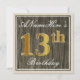 Elegant, Faux Wood, Faux Gold 13th Birthday + Name Invitation