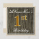 This simple and elegant birthday party invitation design features a personalised message like "ANameHere’s 1st Birthday" (with the "1st" having a faux/imitation gold-like colouring look) within a rustic faux/imitation wood appearance square area featuring a simple border outline. The name is in an elegant white-coloured script-like text, and can be customised. The back features customisable invitation details. A birthday party invitation like this could perhaps be used when inviting people to a birthday party being held for somebody who is celebrating their first birthday. [~Z0000231]