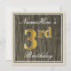 Elegant, Faux Wood, Faux Gold 3rd Birthday + Name Invitation