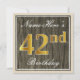 Elegant, Faux Wood, Faux Gold 42nd Birthday + Name Invitation