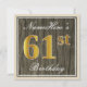 Elegant, Faux Wood, Faux Gold 61st Birthday + Name Invitation