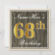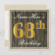 Elegant, Faux Wood, Faux Gold 68th Birthday + Name Invitation