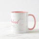 A simple and modern design in a white and pink mug (custom colours and styles) with her handwritten name and custom text (a slogan, a message to someone special, a profession...)
