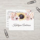 These elegant feminine business cards feature a floral bouquet composed of vibrant sunflowers and other blooms in yellow, brown and pink. Use the template fields to easily customise these with your name and details. These business cards are perfect for wedding planners, florists and other professionals.
