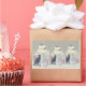 A soft, minimal illustration of two refined cats sitting under a beautifully decorated tiered cake, surrounded by delicate gifts. Gentle colors and elegant details create a warm, celebratory aesthetic perfect for home décor and stationery.