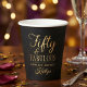 Celebrate a half-century of style with these sophisticated "Fifty & Fabulous" birthday party paper cups. Featuring a striking high-contrast design, these cups pair a deep black background with a shimmering faux gold foil script that exudes elegance and luxury. This template wording is fully customizable, allowing you to easily update the name for the special party! Whether you’re hosting a formal dinner at a hotel or a chic cocktail soirée, these paper cups will set the perfect tone for a memorable 50th milestone celebration.