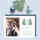 Elegant Fir Tree Blue White Baubles Family Picture Holiday Card