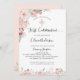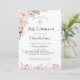 Beautiful floral watercolor girl First Communion invitation with exquisite floral arrangement on top left corner and field of flowers on card's bottom, with flowers in delicate peach, blush pink tones with rose gold glitter details and mint greenery. Card's back in green mint shade with flower detail on the bottom. Invitation with section for "Ceremony" and "Reception" details. Part of our "Mint Elegance" wedding and events collection.