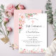 Beautiful floral watercolor girl First Communion invitation with exquisite floral arrangement on top left corner and field of flowers on card's bottom, with flowers in delicate peach, blush pink tones with rose gold glitter details and mint greenery. The card's back in a blush pink shade with flower detail on the bottom. Invitation with a section for "Ceremony" and "Reception" details. Part of our "Mint Elegance" wedding and events collection.