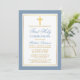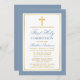 Modern Elegant Dusty Blue and Gold First Holy Communion Invitation with Cross.