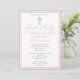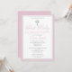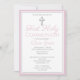 Celebrate this special milestone with a beautifully modern First Holy Communion invitation. This design features a simple silver cross against a white background with a pink border. Design the perfect girl's First Communion invitation by customising the colour, font, date, and all text details.