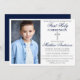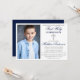 Modern Elegant Blue and Silver First Holy Communion Invitation with Cross and Photo.