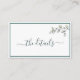 This wedding details enclosure card features painted watercolor green leaves and modern calligraphy.