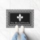 Elegant Fleur de Lis Black & White Chequered Name Doormat