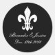Elegant fleur de lis wedding stickers and labels. Personalizable with name of bride and groom plus date of marriage.