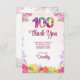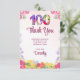 Elegant Floral 100th Birthday Party / 100 Years Thank You Card.