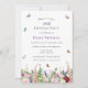 The design features pretty and feminine watercolor pink and purple flowers including roses, tulips, lavender and eucalyptus greenery with brightly coloured butterflies and bumble bees flying around.