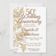 Beautiful 50th wedding anniversary invitation. Invite your guests to your golden wedding celebration in style. This gorgeous anniversary invite contains an elegant floral motif. Fully customise the text the match your own event.