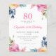 Celebrate your milestone 80th birthday with our beautiful and elegant spring floral paper invitations! Featuring a stunning watercolor design of colourful flowers on a clean white background, these affordable paper invitations are perfect for any springtime or summer celebration. The elegant calligraphy lettering adds a touch of sophistication and charm to your special occasion. Our invitations can be personalised. Whether you're planning an intimate gathering with family and friends or a grand celebration with all your loved ones, our invitations are the perfect way to kick off your birthday festivities.