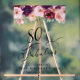 Elegant clear acrylic welcome sign and photo prop for her 80th birthday party featuring "80 & Fabulous" in a calligraphy script and watercolor bouquets of burgundy red, blush pink and purple florals with sage greenery.