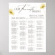Elevate your wedding decor with these elegant Floral Alphabetical Wedding Seating Charts. Designed with a touch of modern minimalism, these stunning charts feature a crisp white backdrop adorned with delicate yellow floral accents. At the top, the phrase 'Your Favourite People' is elegantly displayed, followed by the couple's names, wedding date, and city & state. Below, guest names are beautifully presented alphabetically, alongside their assigned table numbers. 'Your Seat Awaits' invites guests to find their place, creating a seamless and stylish guest experience.