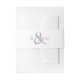A prominent ampersand embellished with a pink and lavender watercolor floral sketch highlights this invitation belly band design with artistic style. The design is monogrammed with the bride and groom's initials that you can edit with your personalised initials.
