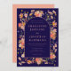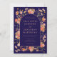 Elegant Wildflower arch navy blue burnt orange, terracotta and peach fall wedding invitation. This enchanting boho chic floral wedding invitation is a stunning blend of autumnal warmth and elegant charm. Featuring hand-painted, watercolor wildflowers around an elegant arch design, the invitation showcases a rich colour palette of burnt orange, burnt umber, coral, orange, brown, yellow, green, terracotta, coral, purple, and pink. The warm earthy tones create a perfect harmony, making it an ideal choice for a fall wedding. The elegant script and modern typography bring a touch of sophistication, while the whimsical wildflower watercolors around the arch window add a personal, bohemian flair to all your essential wedding details. Designed by the talented artist Catherine Sweetman, this unique invitation embodies the spirit of a cosy, intimate celebration in the heart of autumn. With easy-to-personalise templates, it offers a seamless way to convey your wedding information with style and artistry including a website QR code template for online RSVP for your guests. The background in a rich navy blue and peach adding a natural warmth, bringing the beautiful florals to life in a way that feels both fresh and timeless.