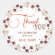 Add a personal and elegant touch to your celebration favours and gifts with these charming round "Thank You" stickers. Featuring a beautiful circular wreath of delicate fall-inspired florals in shades of burgundy, cream, and rust, they perfectly complement your baby shower or any special event. Customise with your name to create unique seals for favour bags, envelopes, or as decorative accents, expressing your gratitude to guests in a stylish way.