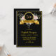 Elegant Floral Black Gold 50th Birthday Invitation