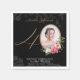 Elegant Floral Black Gold Custom 40th Birthday Napkins. A delicate and feminine floral and botanical themed birthday party. It features beautiful flowers surrounding the photo of the birthday person all with a hint of vintage classiness! The designer is always ready to help, contact her if you need help with this design by clicking on the blue message button below!