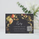 This striking Elegant Floral Black QR Code Wedding RSVP Card features modern and sophisticated design with a black background, beautifully complemented by delicate rustic floral watercolor elements. The use of fall-inspired earthy tones such as terracotta and burnt orange adds a touch of warmth and charm, perfect for an autumn-themed wedding celebration. The black wedding RSVP card exudes a sense of elegance and style, making it a standout choice for couples seeking a contemporary twist on traditional stationery. Seamlessly incorporate technology into your wedding planning process with the QR code feature, providing guests with a convenient and efficient way to respond to your invitation online. For matching items, visit the Black Floral Wedding collection.