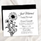 Celebrate your newlywed status with this elegant black and white floral wedding announcement, featuring a sophisticated sunflower and wildflower design. The elegant script and easy-to-read fonts create a timeless look, perfect for sharing your "Just Married" news with family and friends. Whether your wedding was rustic, country, minimalist, or botanical-themed, this versatile design complements summer, spring, garden party, or fall weddings. A perfect choice for couples seeking a classic yet stylish announcement card.