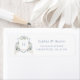 Elegant Floral Blue Hydrangea Monogram Crest Wedding Return Address Label. Traditional Wedding Invitation Suite. White Floral Greenery Crest Return Address Label