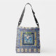 Elegant floral blue tile chinoiserie monogram note crossbody bag